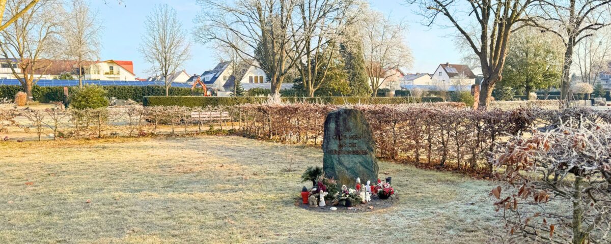 - Die Position der Grabstätte auf dem Friedhof kann nicht gewählt werden. Die Belegung erfolgt im jeweiligen Grabfeld der Reihe nach.